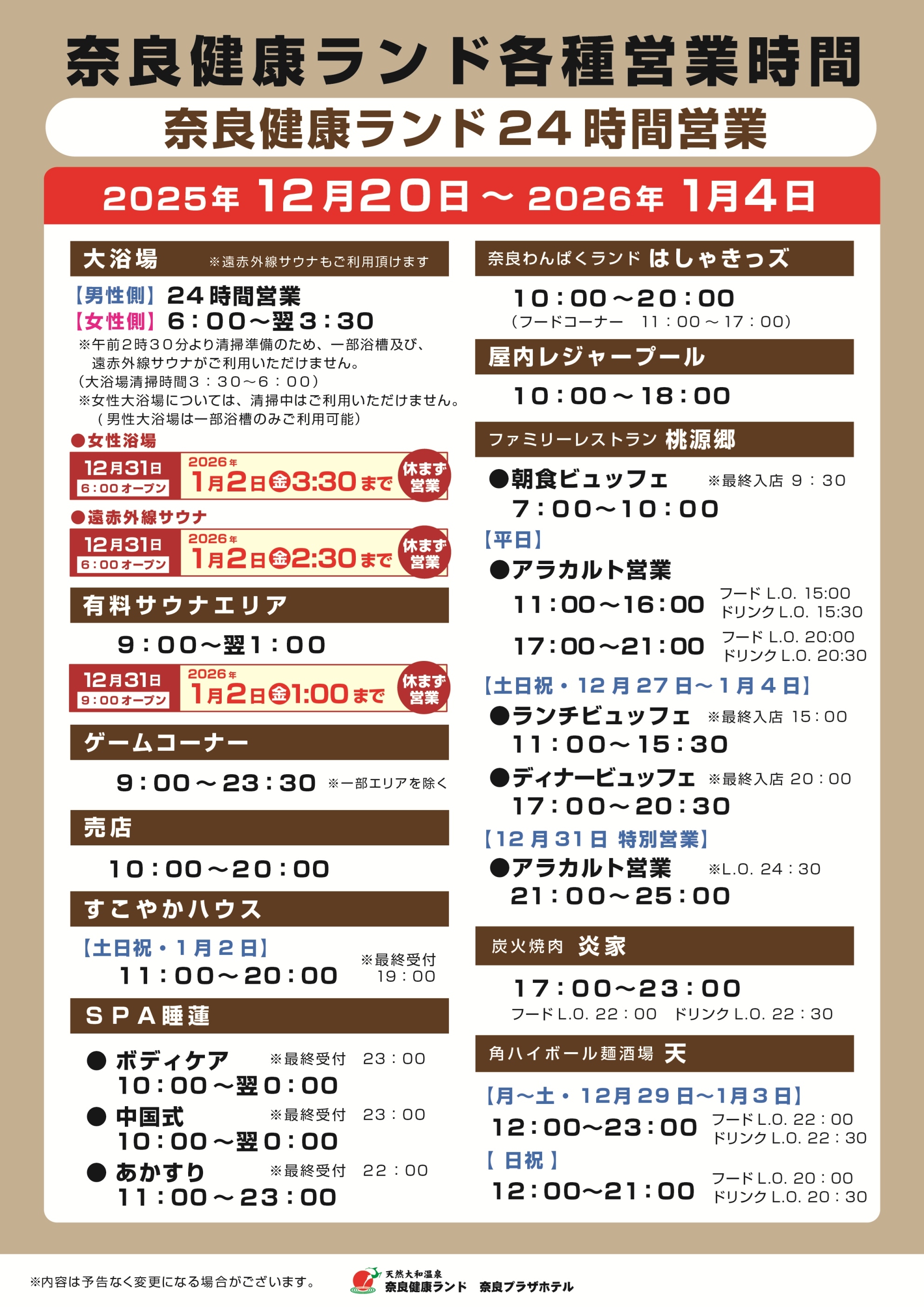 2025年12月07日2025年12月20日(土)~2026年1月4日(日)までの営業時間について