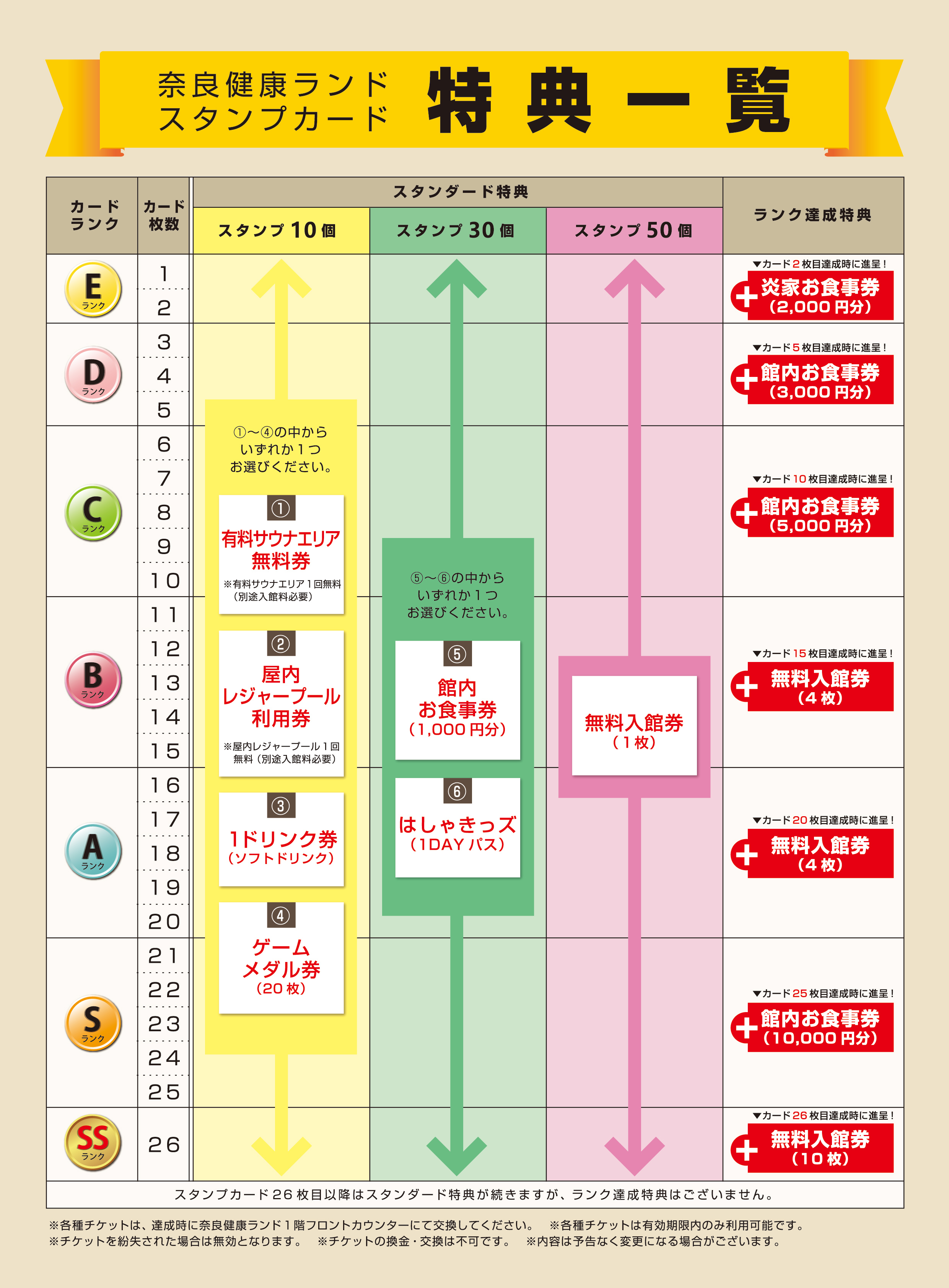 - スタンプカードは必ずご入館時にスタッフにご呈示下さい。